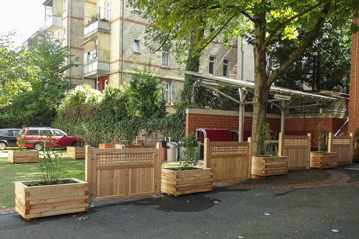 Um unschöne Mülleimer aus dem Sichtfeld im Eingangsbereich zu bekommen gibt es langlebige und komfortable Lösungen aus Holz oder Metall.