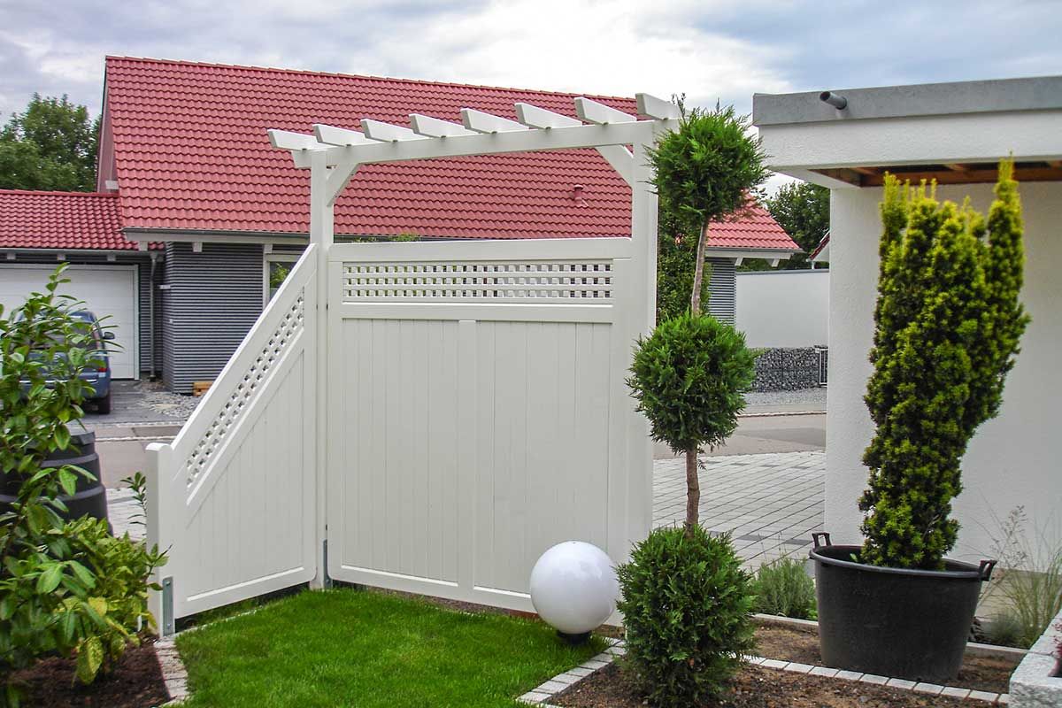 Aus diesem Grund sollte man Douglasie auf jedem Fall Tanne und Fichte vorziehen. Die Sichtschutzelemente sollten mindestens eine Stärke von 4 cm haben und der Rahmen muss verzapft sein (nicht getackert). Ansonsten werden sich die Elemente verziehen.